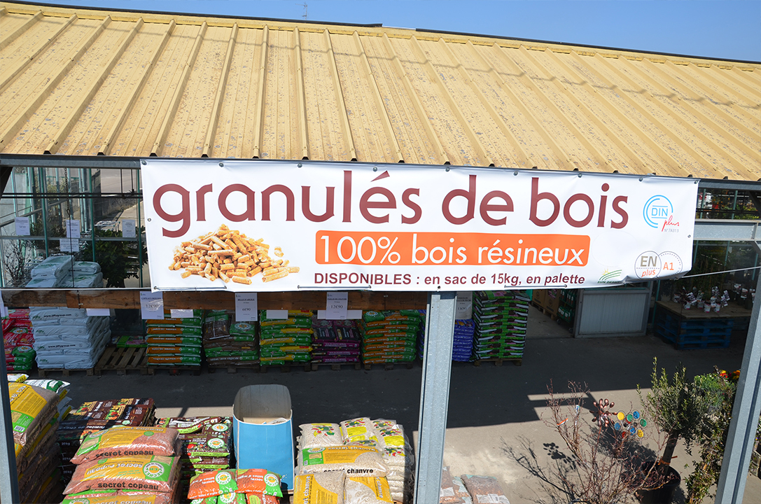 La Jardinerie GENTY à Châtillon-sur-Seine (21) propose la vente de granulés de bois disponibles dans divers formats : en sac de 15 kilos ou en palette/